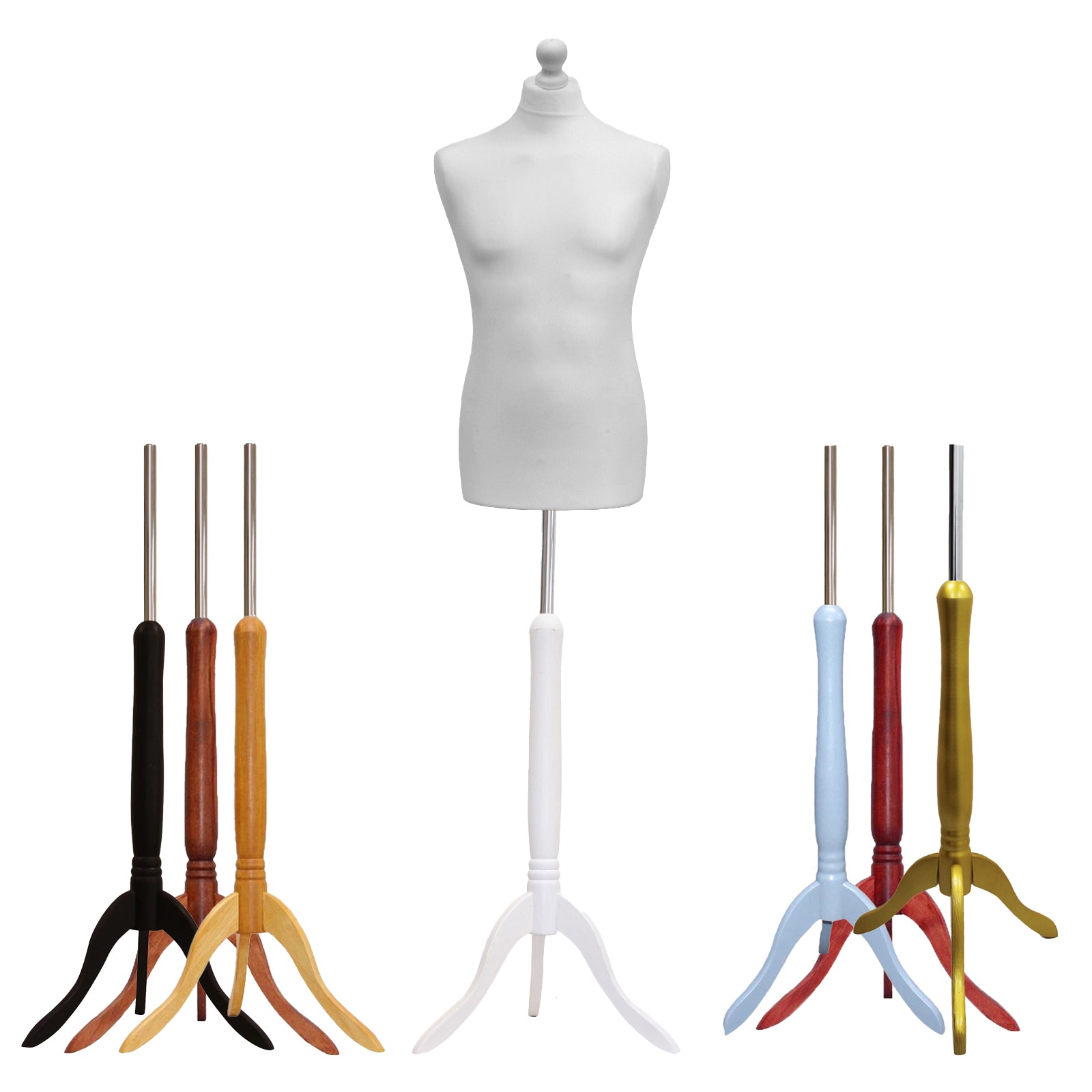 This Male Dressmakers Dummy available With Tripod stand choice of seven colours (White, Black, Walnut, Red, Silver, Gold, and Lightwood), and an elegant thistle finial, it’s a perfect addition to any studio, display window, or sewing space.